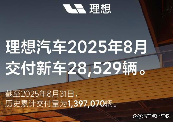 理想汽车8月交付28,529辆,排名从第四滑落至第六,这已是该品牌连续第二个月销量下滑。