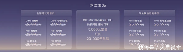 从定价策略来看,阿维塔06采用 “锚定高端,权益下探” 的双轨策略,新车官方定价20.99万-27.99万,与竞品车型处在了相同的竞争区间,确立了高端形象;同时新车还提供了限时19.49万起的现金权益,虽然相较4月上市初期的19.19万门槛有所微调,但依然保持了较为优异的性价比水平。